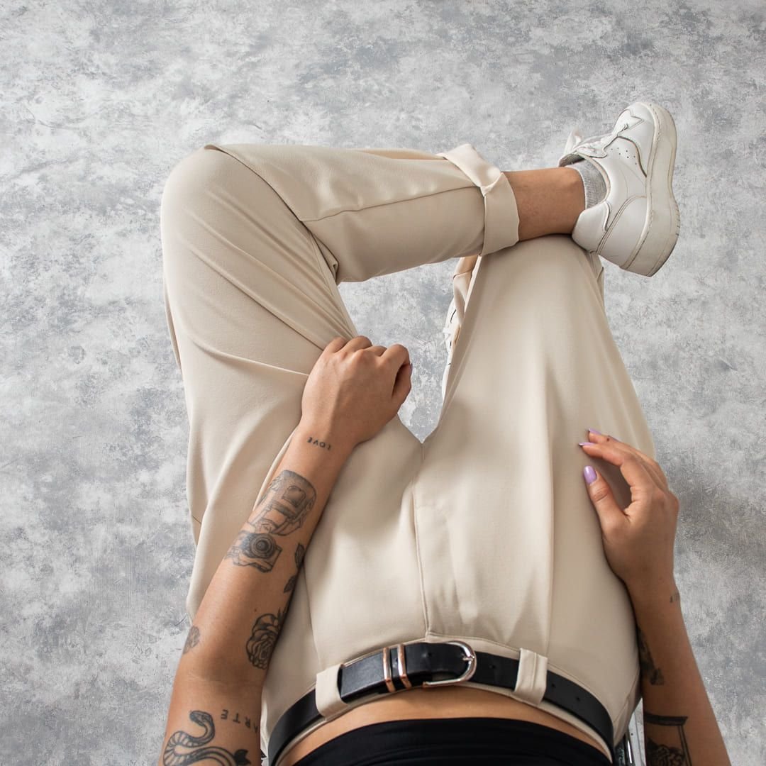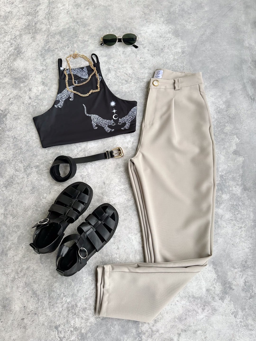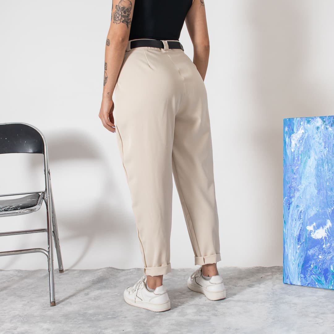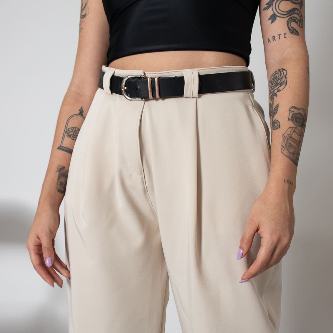 Pant tiro alto, color beige, elaborado en poliester, tiene bolsillos laterales, es una prenda básica fácil de combinar y super cómodo. La tela tiene poca elasticidad Ella usa talla S (1/2) 7